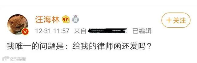 汪海林也凑了个热闹,突然发文,戏问:“我唯一的问题是:给我的律师函还发吗?”
