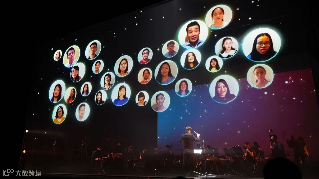 在歌曲《月亮代表我的心》演奏中,邀请到了Voices of Singapore合唱团一起参演,但是由于疫情,他们不能真实的参与到演出当中,配合整场音乐会,他们录了影音,用激光投屏的方式,把每一位参与的合唱团成为投屏到了舞台最前那层纱上。一首完美的大合唱就实现了,真心感叹科技带来的震撼,但却不由的想到演出前的制作,应该非常耗时耗精力。