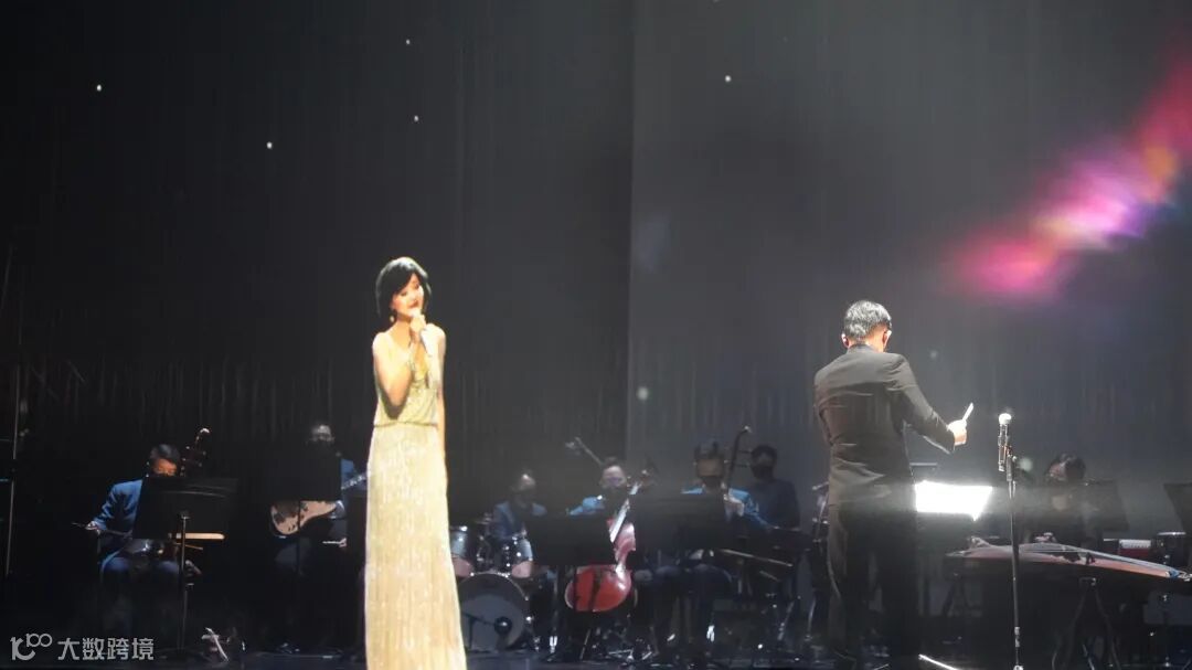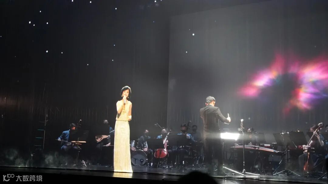 不知不觉已来到音乐会的最后一首乐曲,但这最后几分钟却让我久久不能忘怀,我竟然在当今,那个晚上看见了复活的邓丽君,她真实地站在舞台上,和指挥郭勇德老师相望,唱着她那首最经典最脍炙人口的《我只在乎你》,天哪!我激动得热泪盈眶,高科技真的把邓丽君复活了,穿着素雅的淡黄色长裙,站在那里的她,甜美的歌声,对啊!那真的是邓丽君,短暂的停留、唱着唱着,一瞬间,她又消失了,我犹如在梦幻当中,傻傻分不清。但那种瞬间的心灵震撼确确实实是有的,屏住呼吸一想,她已经离开我们26年了。