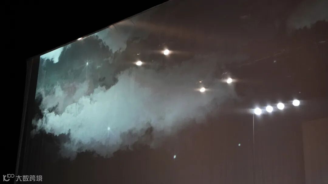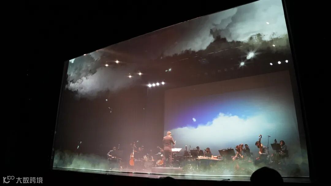 由于跑错地方的缘故,我是音乐会第二首乐曲后才进去,整个舞台上被一层几乎是透明的幕布笼罩着,整个乐团演奏家们像是被装在一个巨大的玻璃盒里,表面那一层像纱质地的东西上有非常真实会动的云朵图像,着实让我耳目一新,瞬间让我联想到,是否以后的演出多样性会从这样的方向发展,这也许是演奏会舞台的一种大转变。