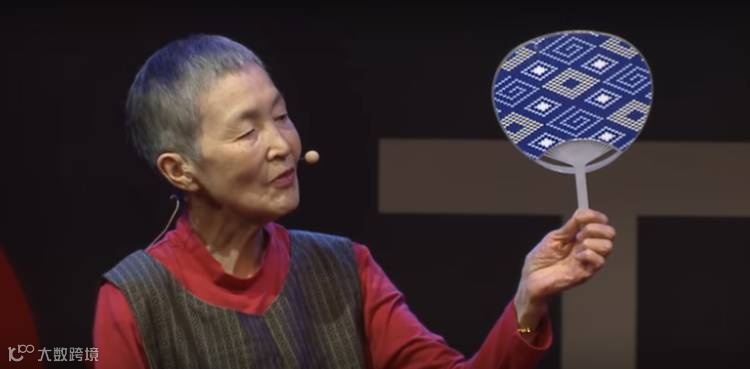 在 Ted 演讲中老奶奶还展示了她在扇子、本子、袋子上的印花设计。