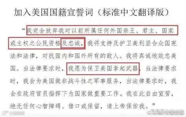 甚至在她微博下贴出了加入美国国籍宣誓词。