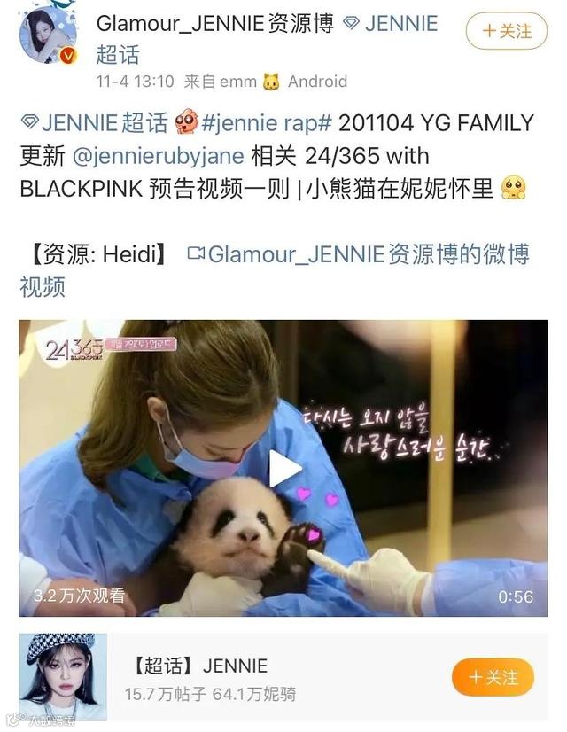 而抱福宝的妹子,就是成员Jennie,此时Jennie明显带妆,Jennie抱着福宝,另一位成员还触碰了福宝的手掌。