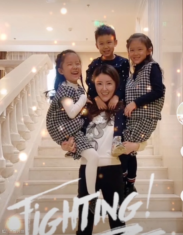 一个月前甘薇还在社交平台上晒出过自己家的豪宅,甘薇两手臂抱着双胞胎姐妹,儿子则坐在妈妈的肩头。