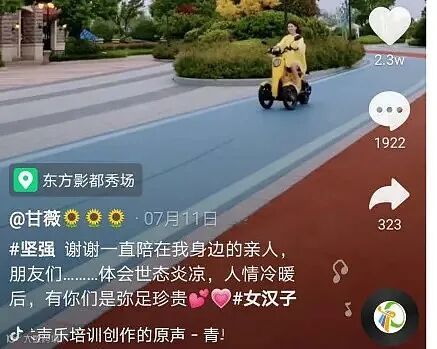 但另一边,甘薇在抖音又呈现了完全不一样的画风: