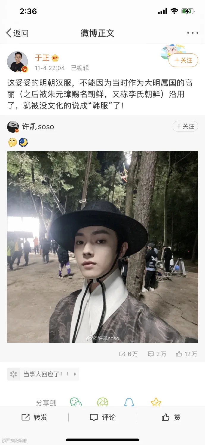 回应许凯新剧服装争议,“这妥妥的明朝汉服,不能因为当时作为大明属国的高丽(之后被朱元璋赐名朝鲜,又称李氏朝鲜)沿用了,就被没文化的说成"韩服"了!”