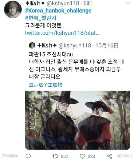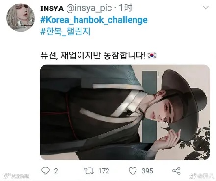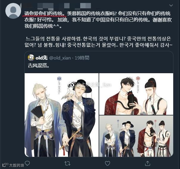 并说清朝的服饰才是中国传统汉服,请中国画手珍惜自己的“真实”的文化,不要“剽窃”韩国的传统文化。