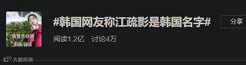 今日,一条#韩国网友称江疏影是韩国名字#的话题登上了热搜第一。