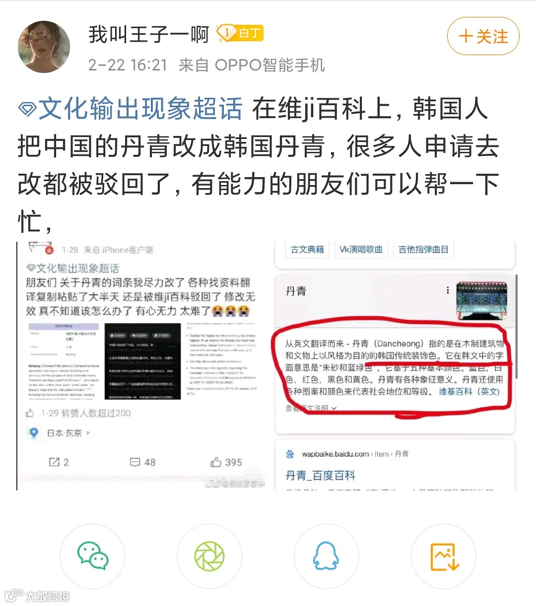比如在维基百科上,把中国的丹青改成韩国丹青。