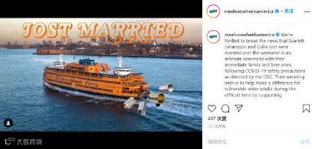 美国车轮用餐非营利组织官方账号公布了消息,表示两人在周末举办了一个小型仪式,只有亲属和友人出席,活动遵守新冠疫情安全规章,他们的婚礼愿望是通过支持该组织来帮助在这个困难时期的脆弱老年人。