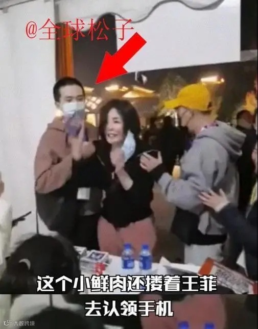 王菲认领手机的时候,身边有一位小鲜肉,还搂了王菲的肩膀。