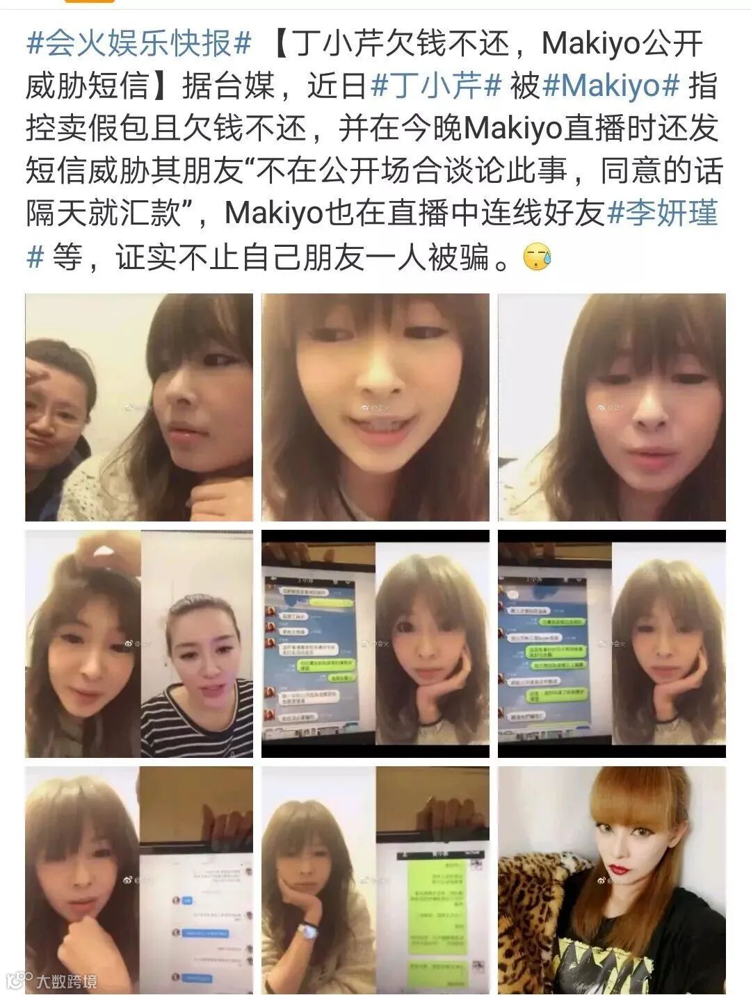 到了2018年,连Makiyo也直播向丁小芹讨债。Makiyo直播中大骂丁小芹欠自己的姐姐(胖姐)3万8千元钱不还,而且还卖假包!