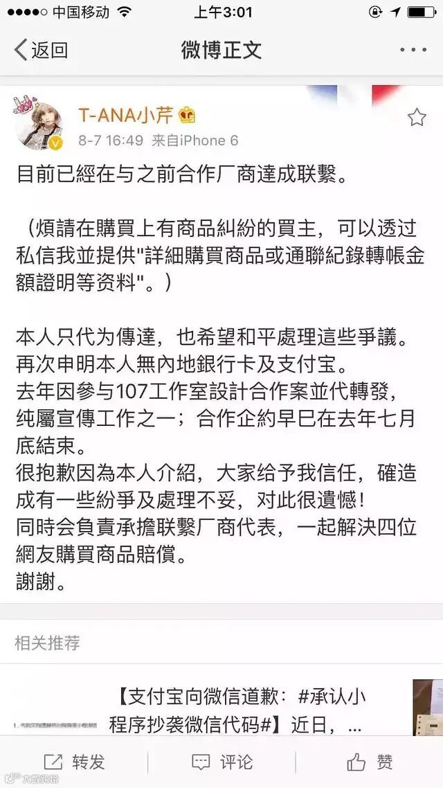 结果16年9月,丁小芹在微博直播的时候提到了这件事,说自己没有打开包包确认就交给对方,结果就被告了。