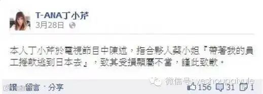 丁小芹因为跟合伙人蔡小姐有矛盾,于是跑到《今晚谁当家》还有《命运好好玩》这样的谈话节目上指控前合伙人蔡小姐掏空公司资产、卷款潜逃到日本。