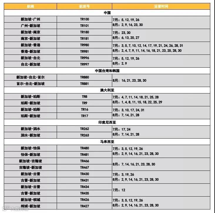 7月至八月完整航班调整计划见下图