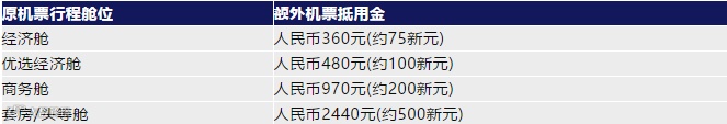 *额外机票抵用金标准