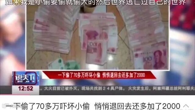 小偷作案偷了70多万元,吓坏了,自己偷偷又返回现场如数奉还且还自己倒贴2000元!