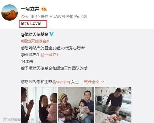 视频传出后,李亚鹏虽然没有正面表态,但是却转发嫣然天使基金的动态,并配文称let's love,这是嫣然的宣传语。作为一个父亲,他做到了自己能做到的,对于女儿来说,他是一个好爸爸。而这句宣传语包含着他对女儿的爱,这个敏感的时刻他选择说这句话,似乎在暗示着什么。