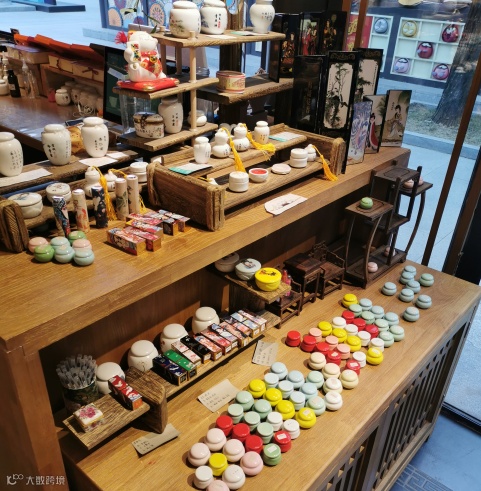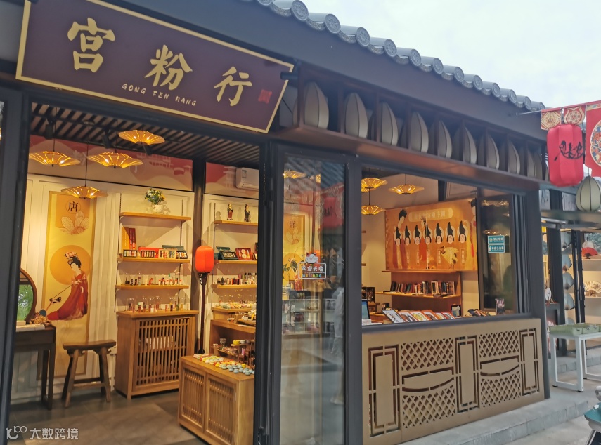 “凉声散落鹅池水,不禁潇潇云鬓边”。被岸边的一爿精致小店所吸引,匾额上赫然写着“宫粉行”三个字,径直走了进去,才发现别有情致。