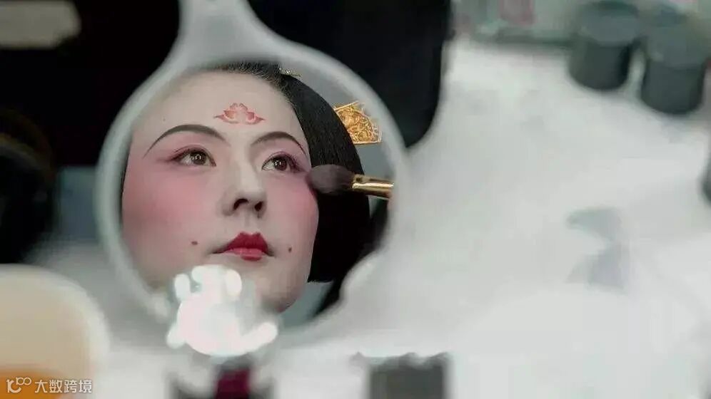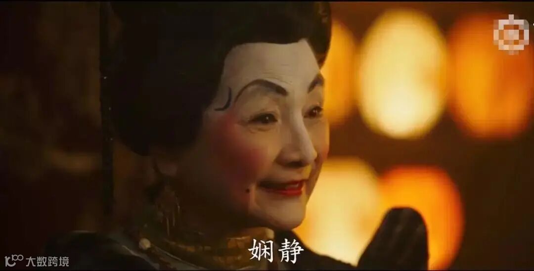 上图里这道“斜红”在电影《花木兰》里刘亦菲没画,预告片里饰演媒婆的郑佩佩老师在太阳穴处画了个类似的。