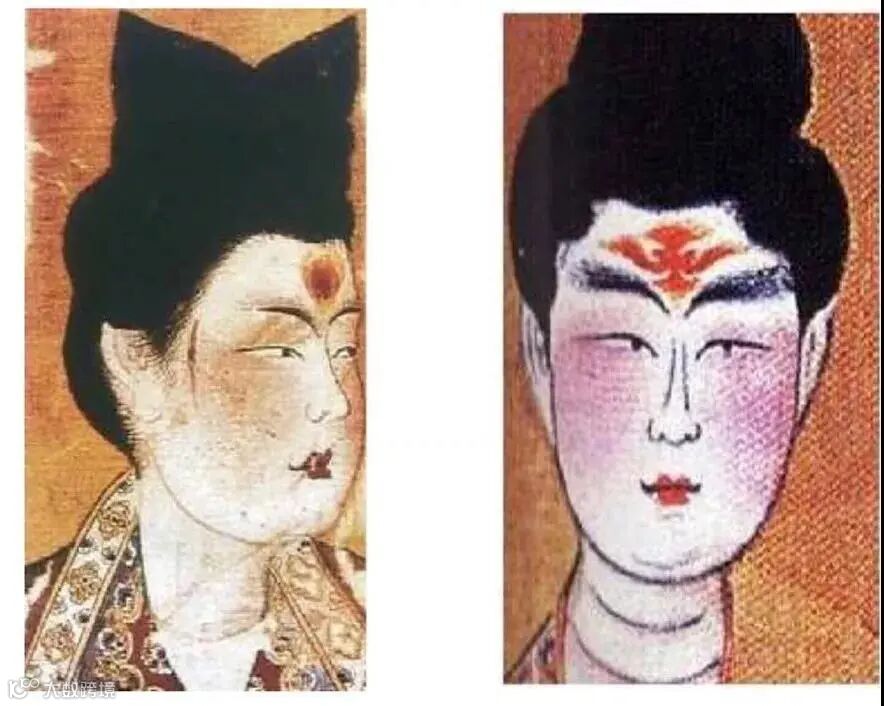 《国家宝藏》里面也提到过,女子喜在额间涂染鹅黄、贴花钿,这里的鹅黄就类似咱们现在说的高光,都是用来修饰脸型的。