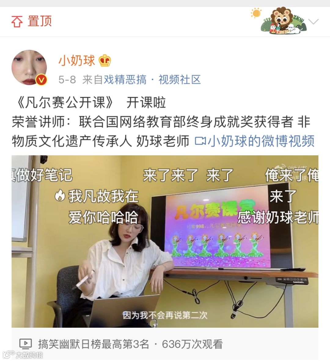 “凡尔赛文学”是微博大V@小奶球带起来的——