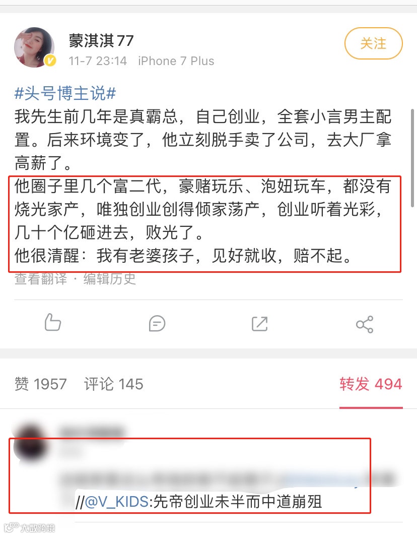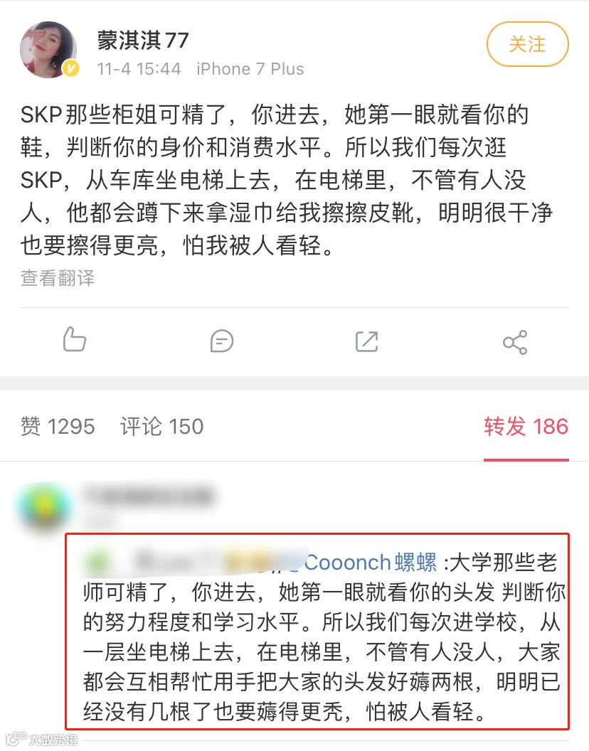 但“凡尔赛文学”却没有火在小奶球身上,而是因为网友@蒙淇淇77的微博而大火。