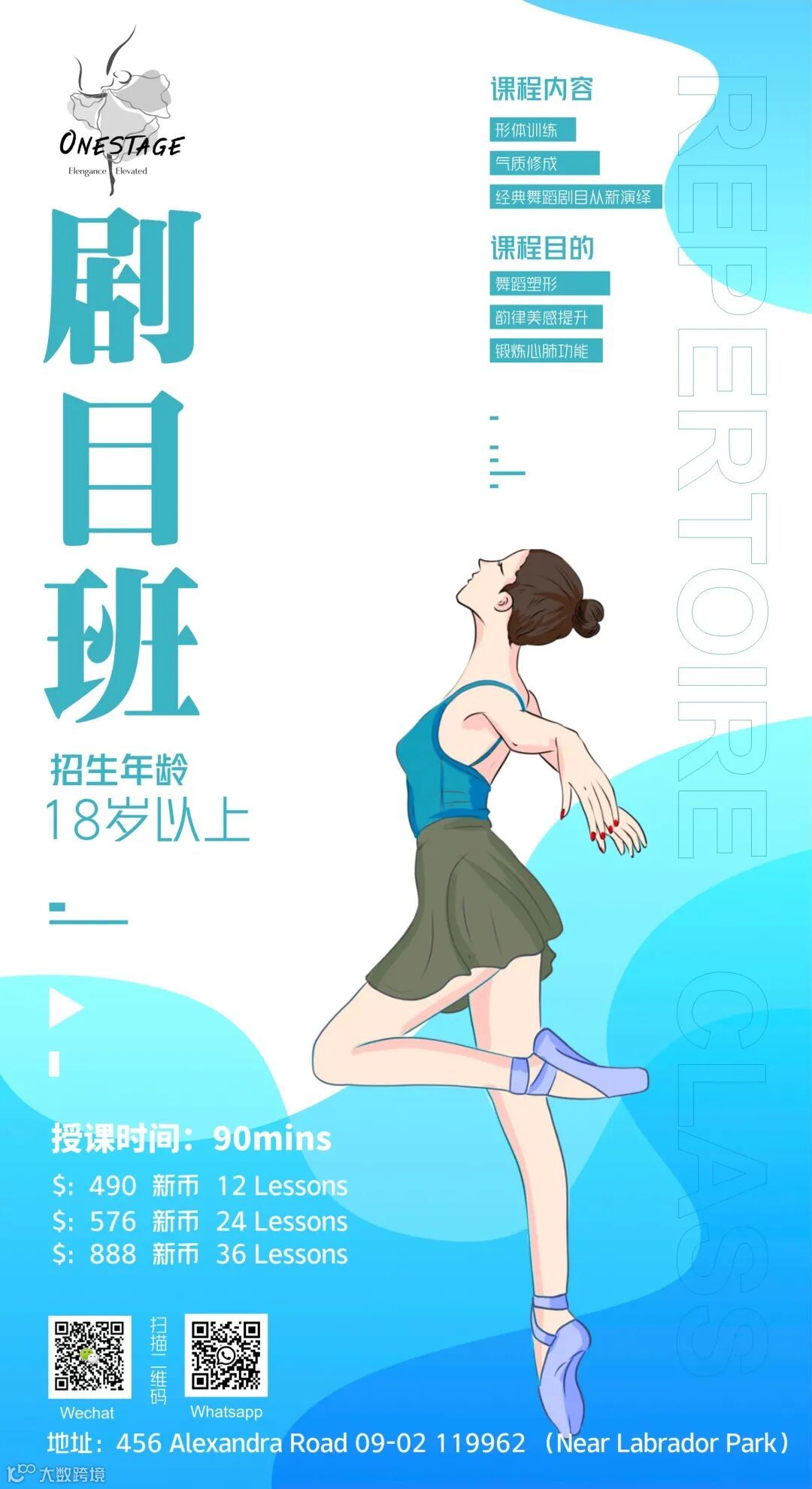 18岁以上的剧目班,课程内容为形体训练、气质养成、经典舞蹈剧目从新演绎,课程目的为舞蹈塑形、韵律美感提升、锻炼心肺功能。