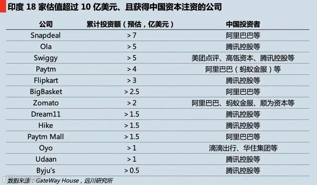 中国在印投资纵深:30 家互联网独角兽,18 家有中国股东的内容