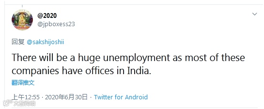 “由于这些(应用)公司在印度都设有办公室,将出现大规模失业。”