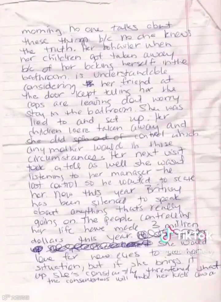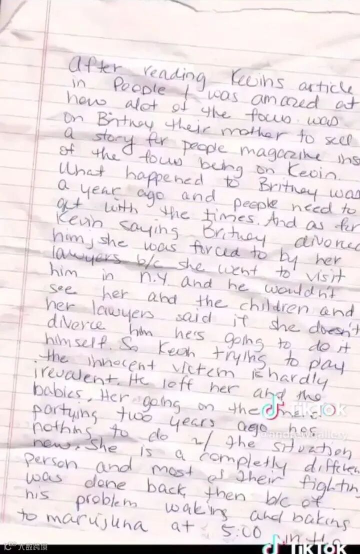 今年7月,12年前跟拍布兰妮纪录片的摄影师Andrew Gallery,在tiktok分享了当年一起工作时,布兰妮塞给了他一封亲笔信。