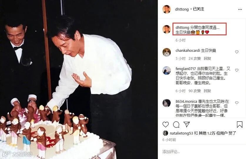 9月12日也就是今天是张国荣64岁冥诞,唐鹤德晒出张国荣昔日庆生旧照缅怀,并用他的歌词“分开也像同渡过”。此外,袁咏仪、尹正、黄百鸣、古巨基、李丽珍等艺人也纷纷发文。