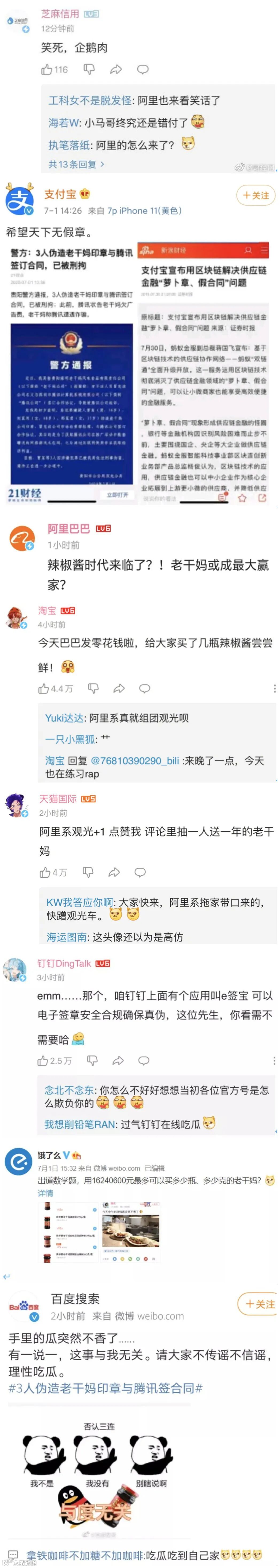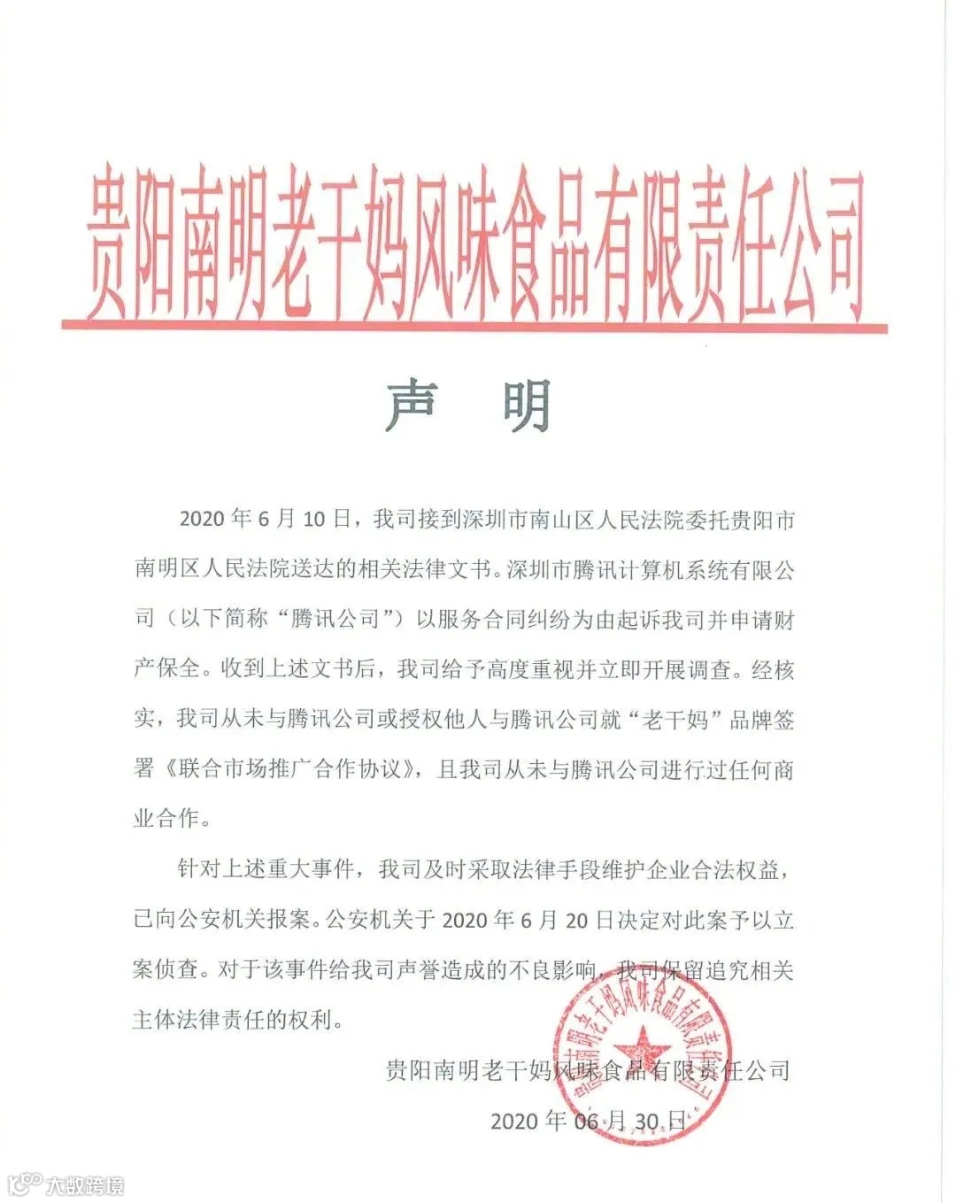 到了晚上,老干妈出来回应表示从未与腾讯有过合作。