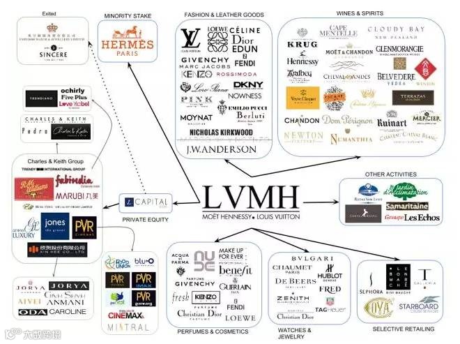 当我们了解一下奢侈品品牌的商业版图,市面上我们熟知的奢侈品品牌都是全球最大奢侈品帝国
