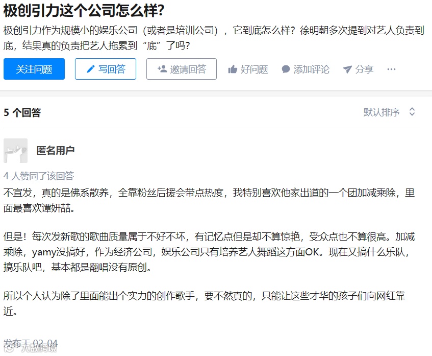 其实,关于极创公司对艺人负不负责的问题,知乎上也早有提问。