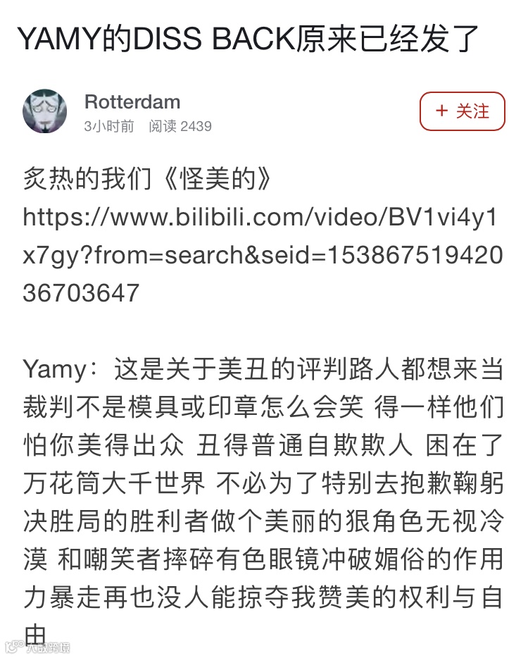 最后,用Yamy自己唱过的歌来回应一下所谓美丑的讨论——