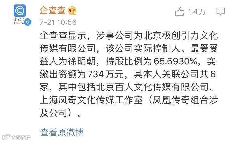 上面提到过,Yamy的公司为北京极创引力文化传媒有限公司,而她的老板则是徐明朝。