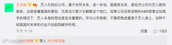 王洪迪(好声音学员)表态:艺人与经纪公司属于合作、服务关系。