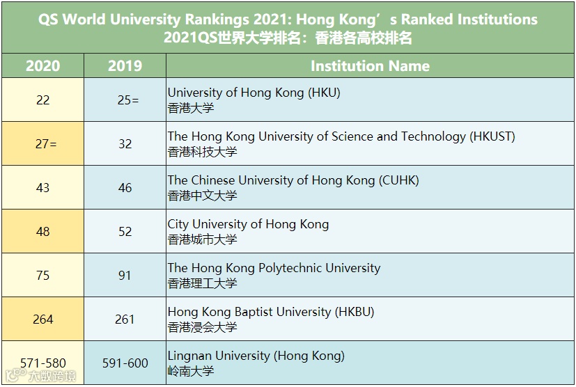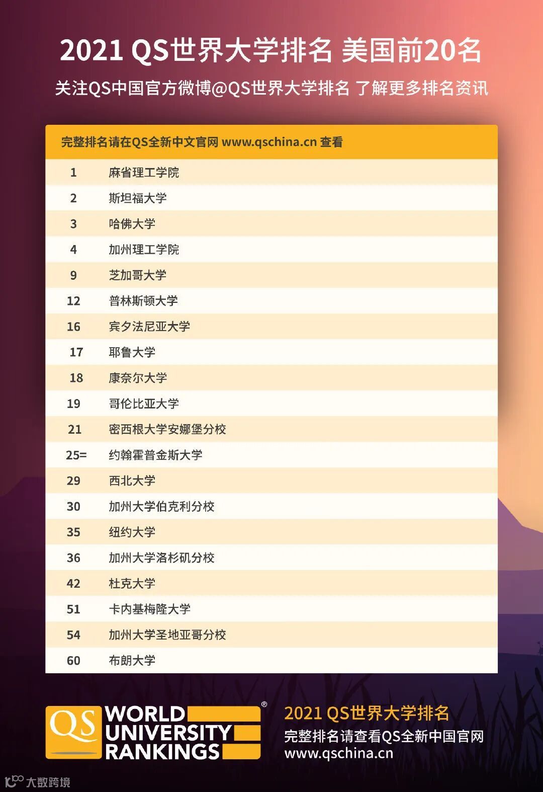 2021QS世界大学排名由全球高等教育研究机构QS Quacquarelli Symonds编制,对全球前1000所大学进行了排名。