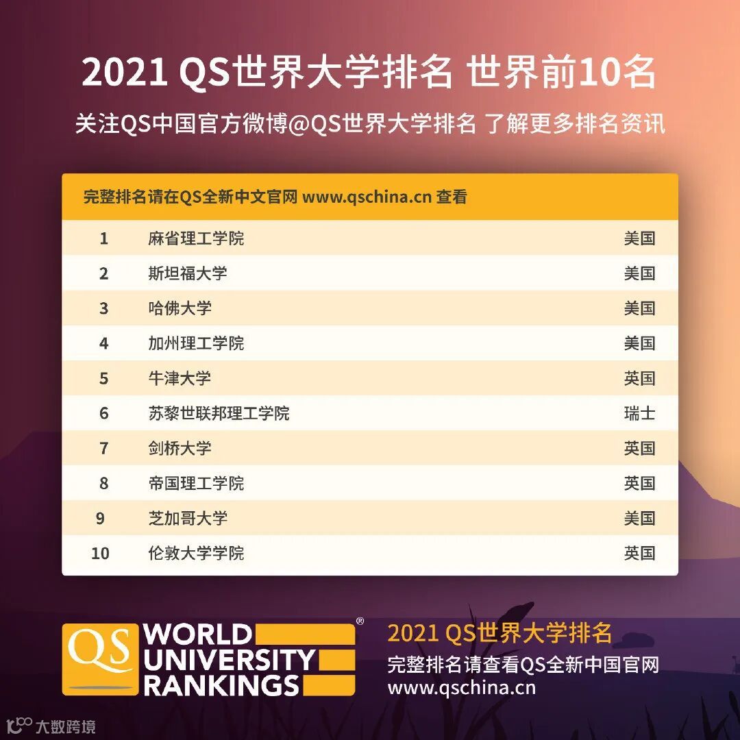 (Quacquarelli Symonds)公布了最新的2021世界大学排名。