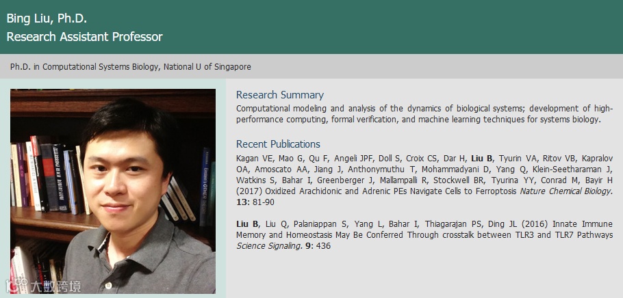 匹兹堡大学发布的一份声明中称,刘冰是一名优秀的导师和高产的研究者,在该学院就职的六年间,他与人合著了一本书与30多篇论文,他还为一系列复杂的过程设计了许多定量模型,为实验人员和临床医生提供了重要的见解。