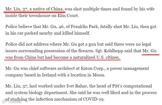 《匹茨堡邮报》在报道中则透露,刘冰是中国籍,顾昊也来自中国,但已经加入了美国国籍。