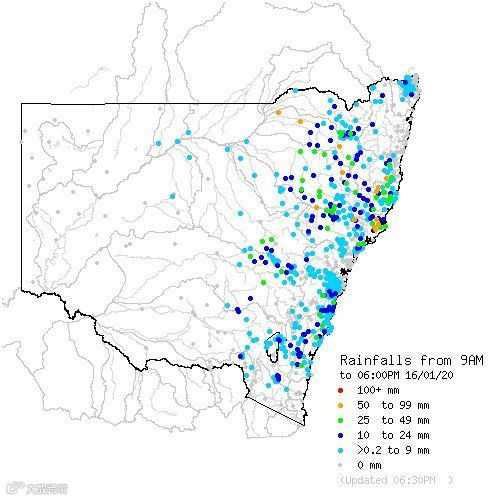 澳洲气象局1月16日发布的降雨分布情况▲