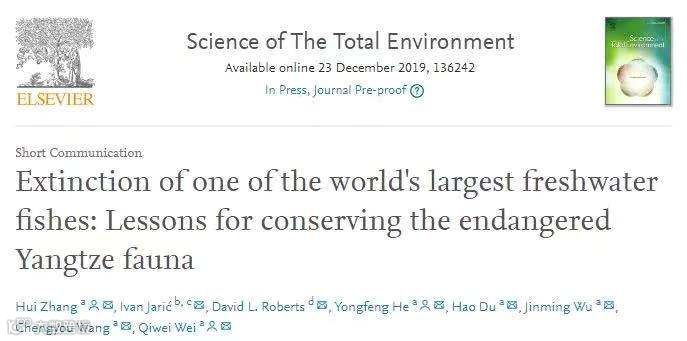 白鲟已经被宣布为“功能性灭绝”。