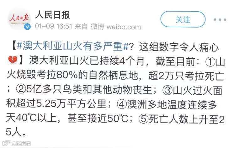 大家都知道这段时间澳洲遭遇了一场大火,澳洲的生态正在经历一场漫长的灾难。
