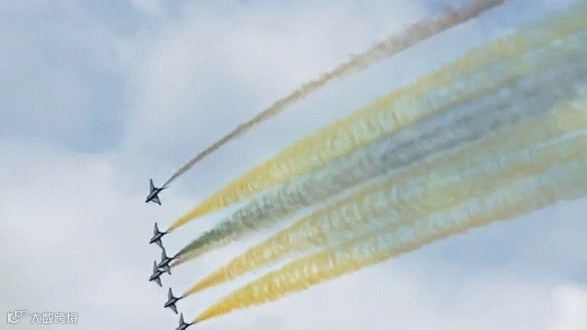 中国空军八一飞行表演队组建于1962年,先后使用歼-5、歼-6、歼教-5、歼-7等机型,目前使用歼-10表演机,是中国具有自主知识产权的第三代战斗机,机身涂装以宝石蓝为主,飞机腹部、顶部、两侧插入一道白光寓意蓝天利剑,红色和蓝色是中国空军军旗的底色,红白蓝利剑主题既体现了中华民族厚重的历史文化底蕴,也传承了中国空军的优良传统,是中国空军标志性文化符号。