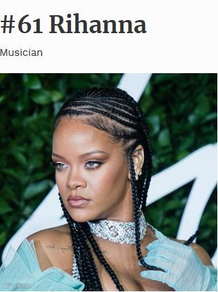而此次上榜理由是因为她与全球最大奢侈品集团LVMH合作推出的美妆品牌Fenty Beauty,蕾哈娜不仅负责开发设计产品,同时也为品牌的传播宣传制定策略。