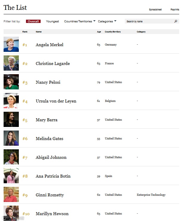 近日,《福布斯》公布了2019年全球前一百位最有权力的女性。