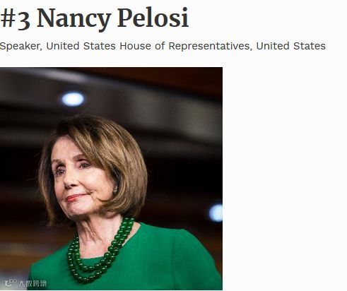 南希·帕特里夏·佩洛西,美国政治人物,第52任及现任美国众议院议长。