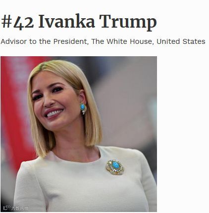 伊万卡·特朗普(Ivanka Trump)是是名美国商人、电视名人、名媛、作家和模特儿,现任特朗普集团执行副总裁及白宫总统顾问,是美国第45任总统唐纳德·特朗普的长女。